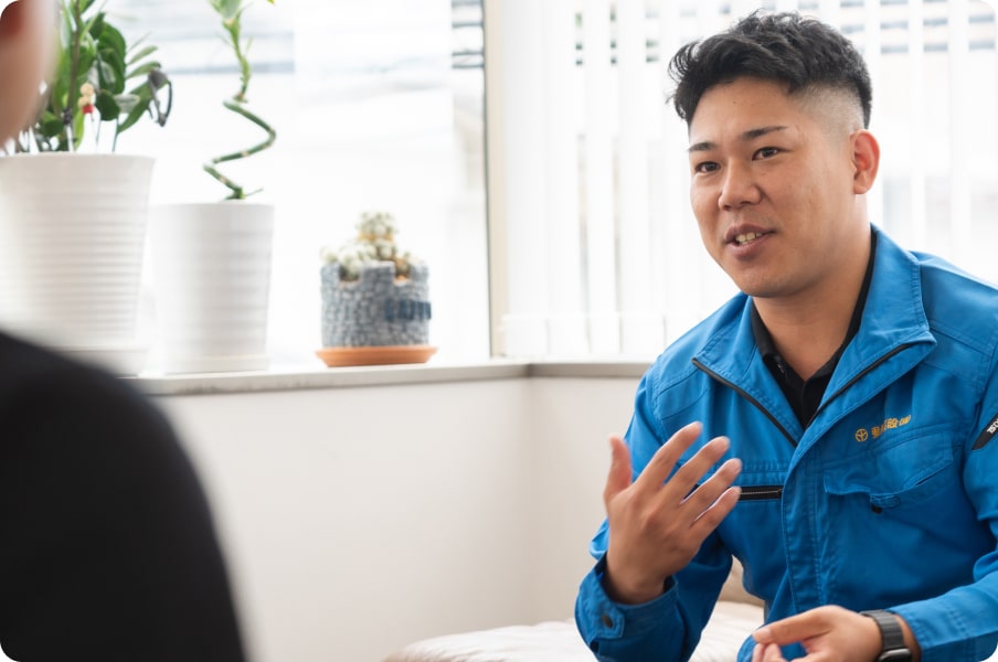 営業職の仕事は、お客様との商談を通じてプロジェクトを受注していく重要な役割を担っています。お客様のさまざまなニーズや要望を把握し、最適な建築プランを提案します。敷島建設の営業マンが大切にしていることは「機動力」です。