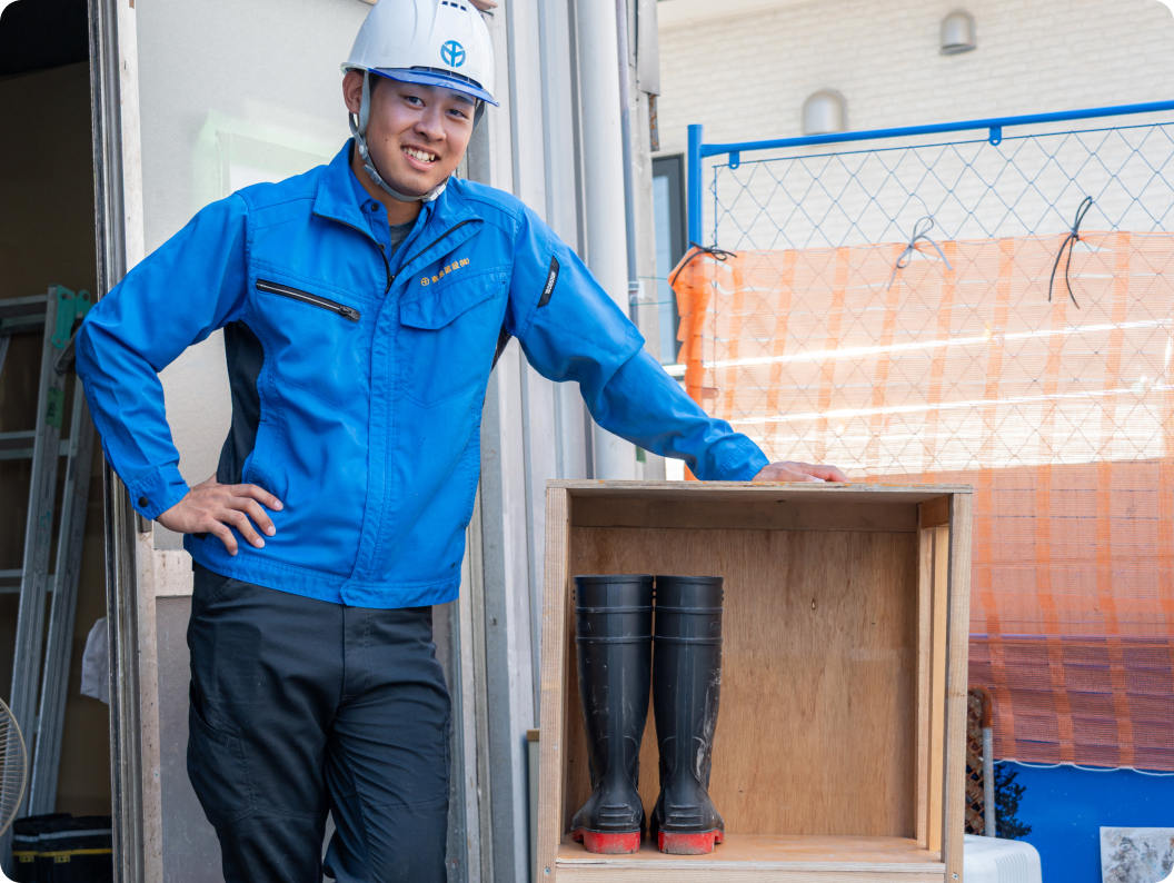 木造を中心に学んでいたので、RC造やマンションのことはあまり触れてこなかったんですが、もともと作ることが好きだったので、建築の道に進みました。実際に働く今でも、手を動かすのは好きで、現場で使う長靴入れを図面から描いて作りました。図面は先輩に何度も直しをもらいましたが、やっぱり作ることは楽しいです。